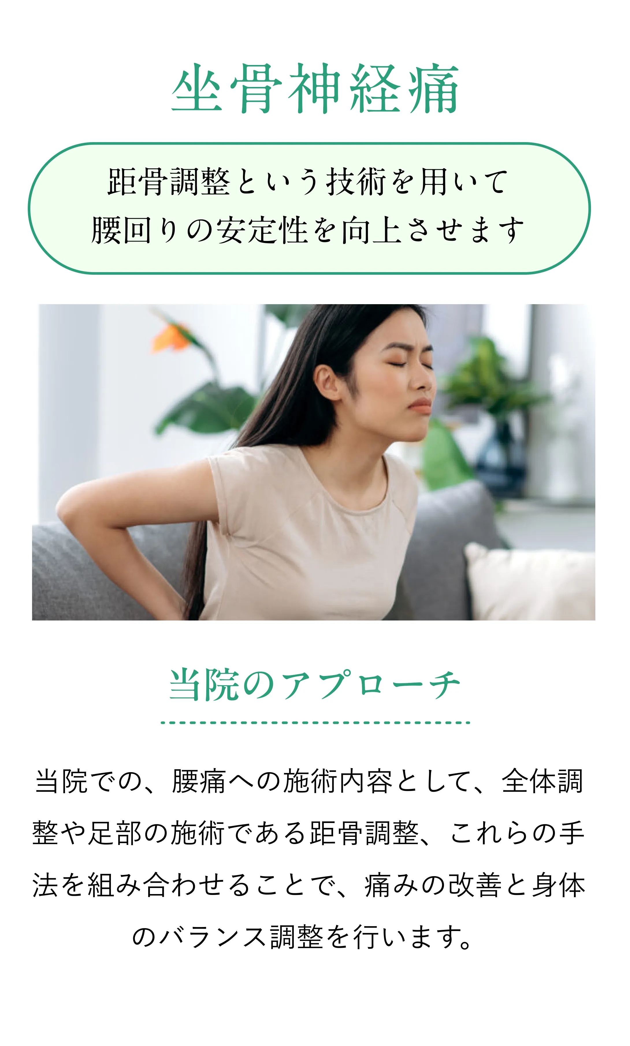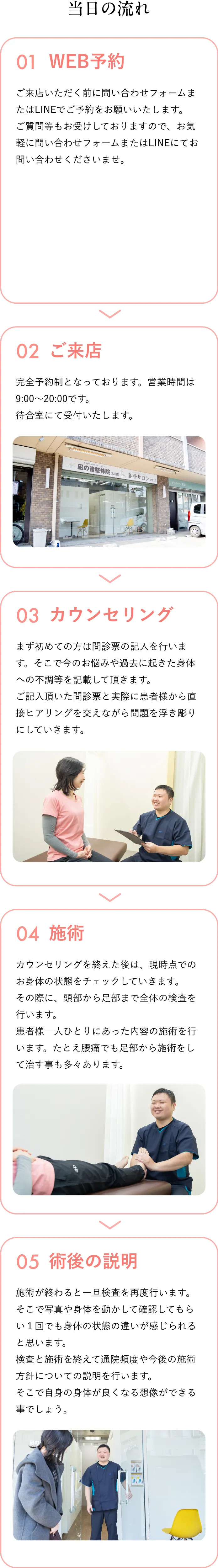 当院で行う施術は、痛みを伴わない施術を行っております。強い刺激を入れずに、患者様の身体の状態を見て施術内容を都度変えて行うものとなっております。